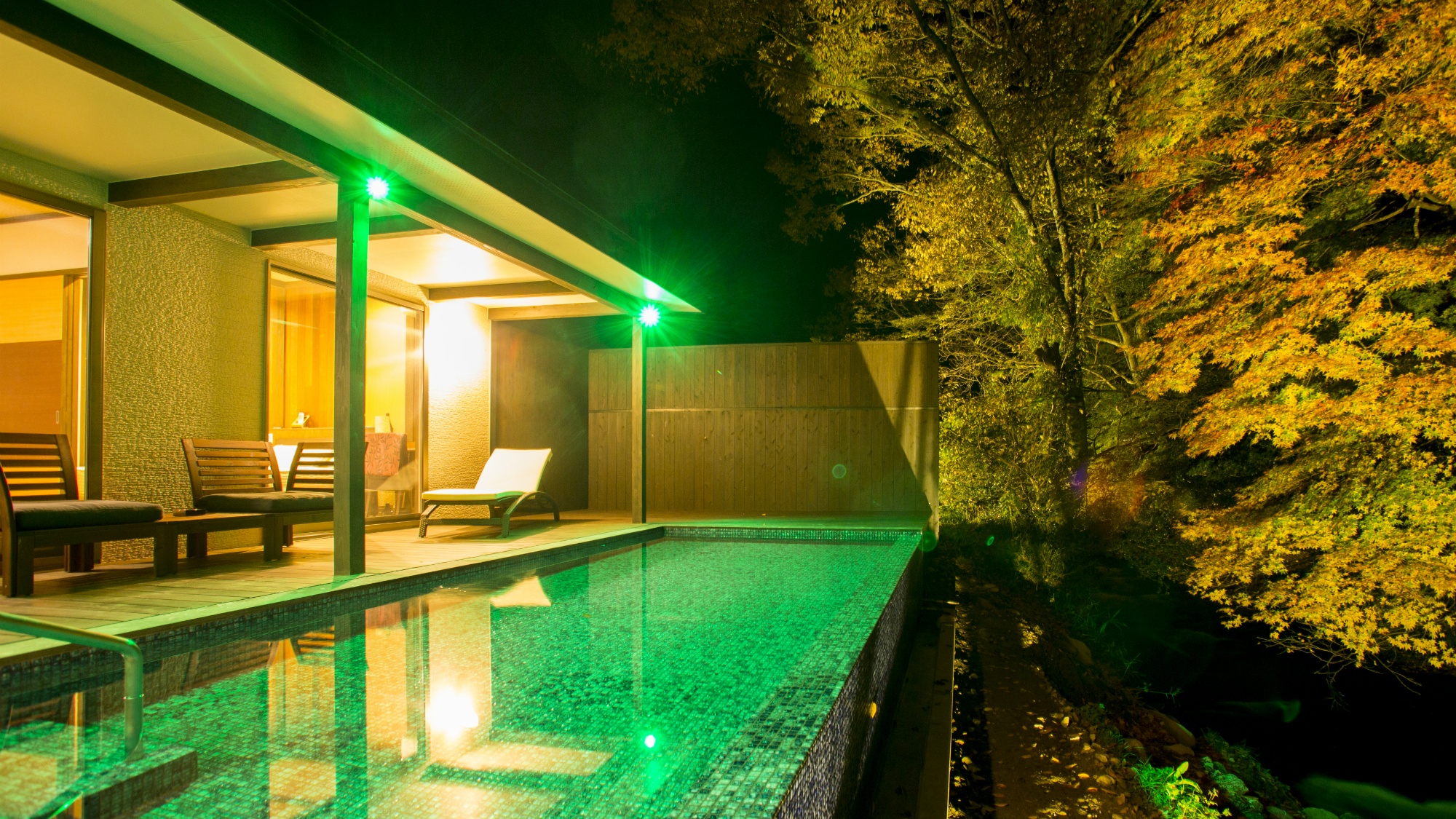 全10棟うち1棟の離れ宿(関山)にプライベート温泉プールが付いています。